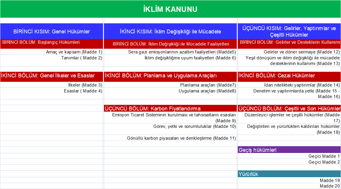 İklim Kanunu’nun temel yapısı ve kapsamı aşağıda şematik olarak sunulmaktadır.