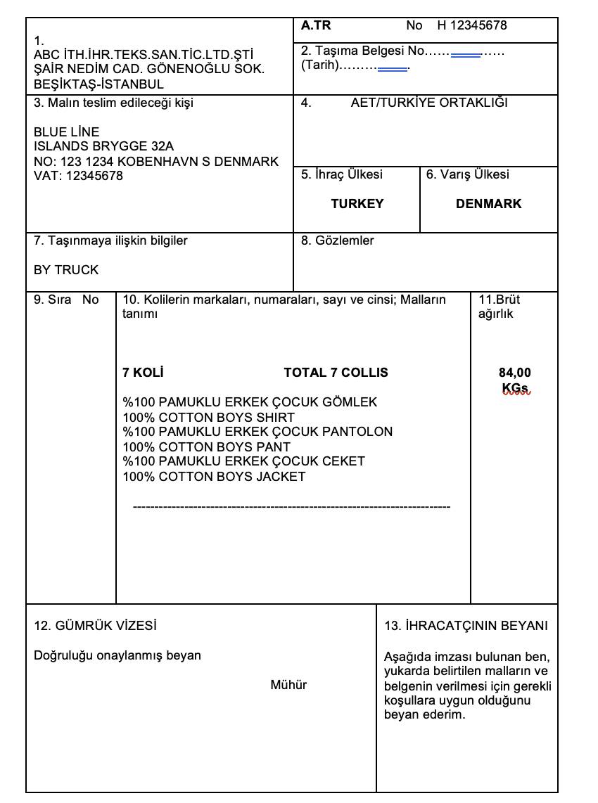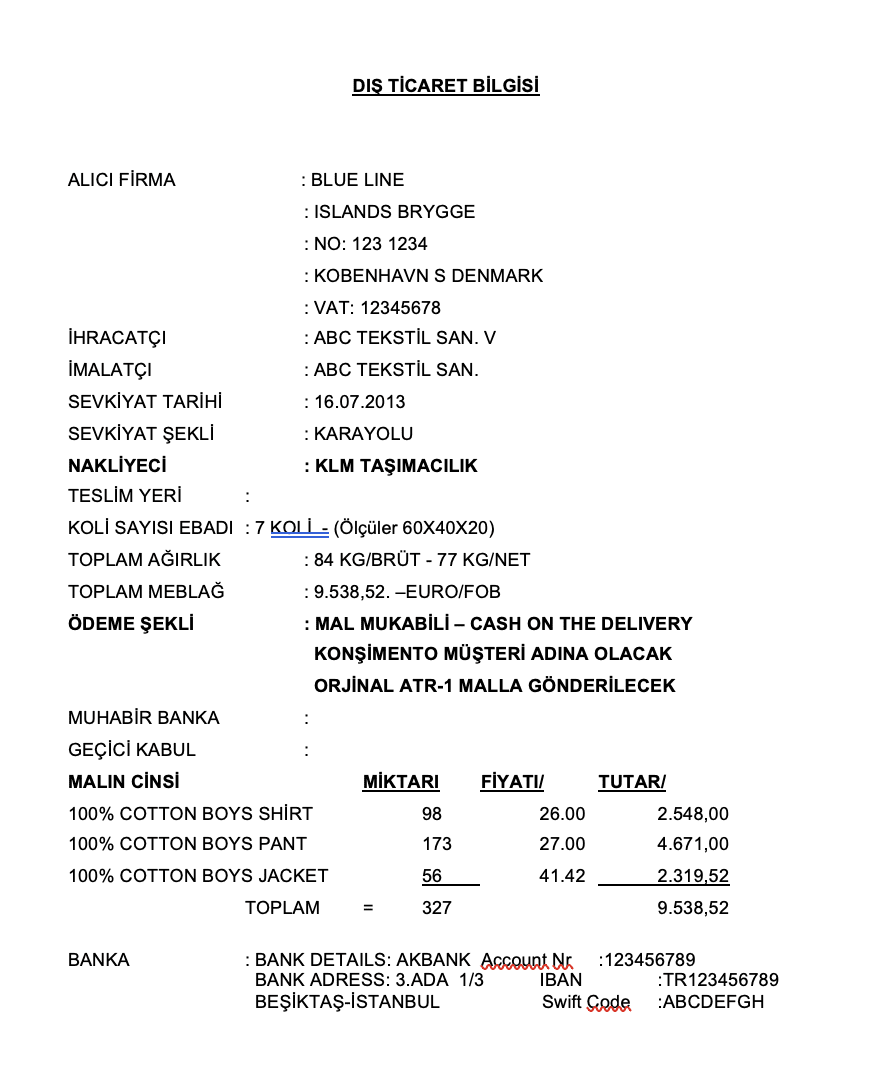 3) Belgede/izinde belirtilen ihraç ürününün adının, özelliğinin ve miktarının (belgede/izinde kayıtlı birimlerle),